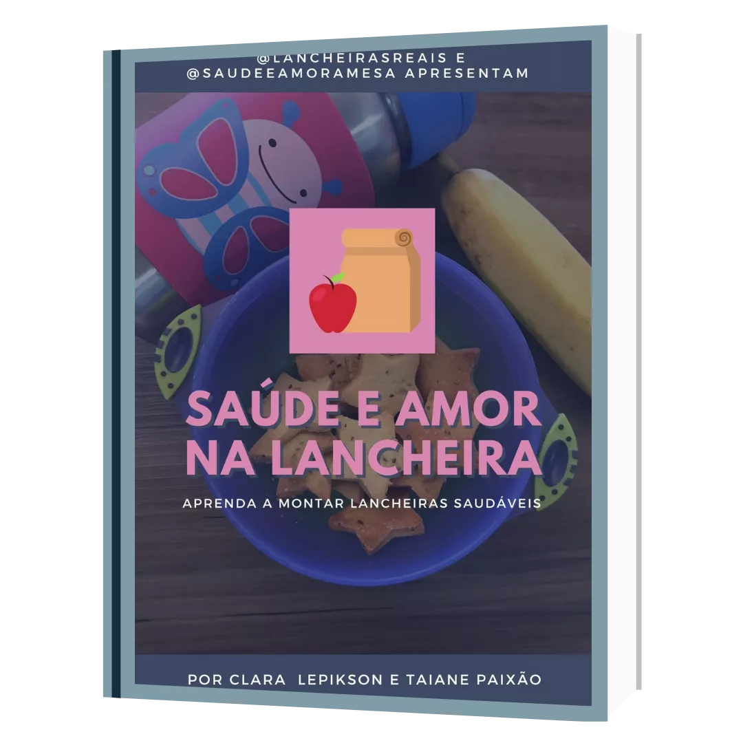 Livro digital "Saúde e Amor na Lancheira", com receitas de lanches práticos e saudáveis para crianças ou adultos.